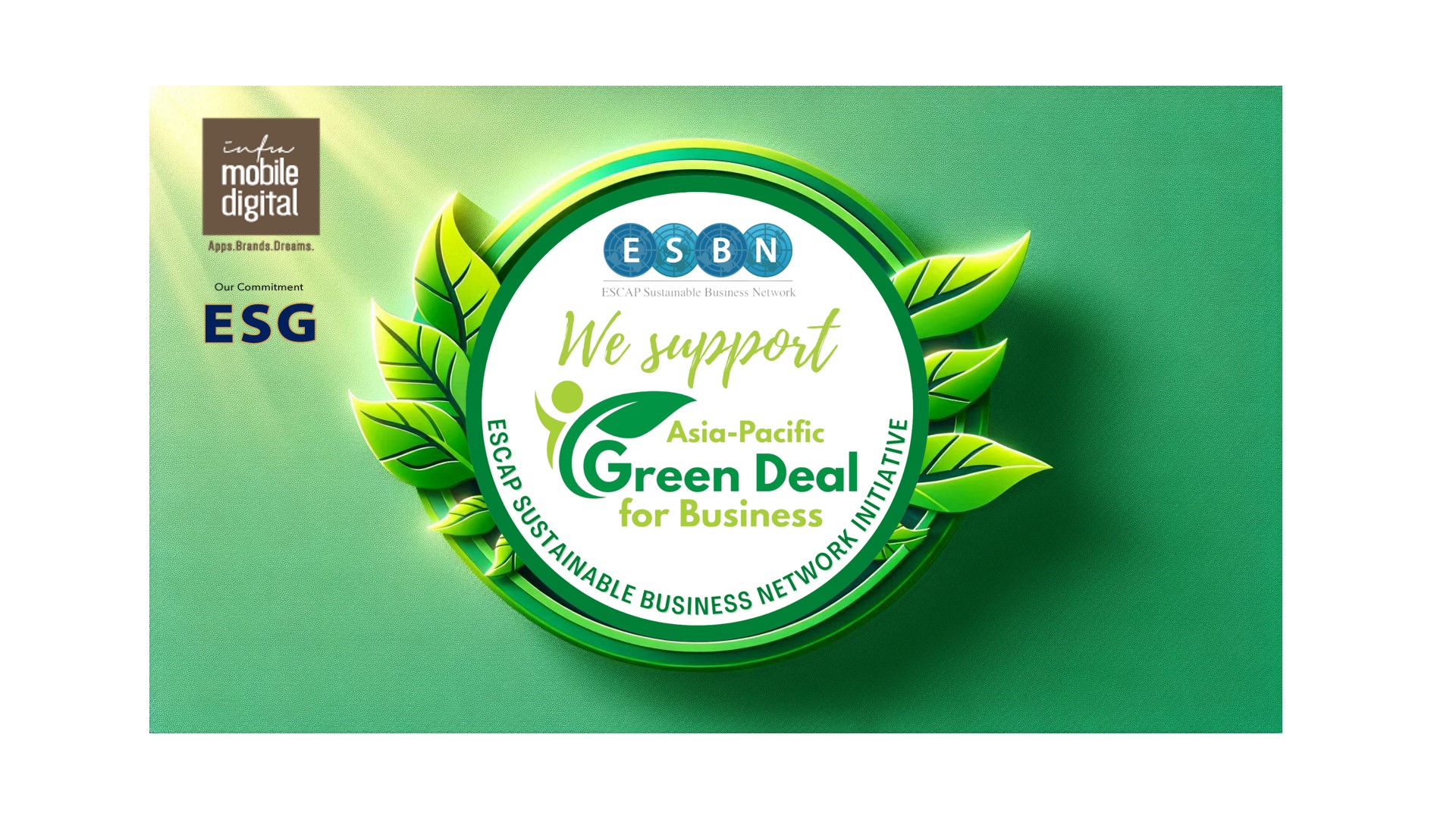 Sustainability Recognized: IMD’s Green Badge Achievement Sets New Standards superadmin July 27, 2024 Infra Mobile Digital Sdn Bhd (IMD) is pleased to share that we have been recognized with the ESBN Asia-Pacific Green